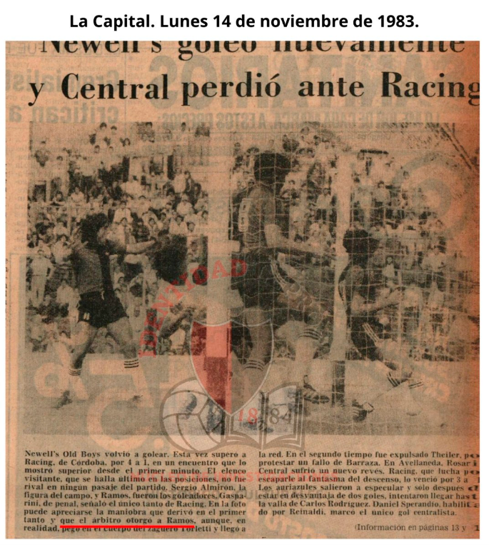 El 21/06/89 NOB le ganó a Mandiyú Ctes. (2-1) con 2 goles de Condorito Ramos, a los 28' ST y 42' ST. Estos serían los goles 103 y 104 del máximo artillero.